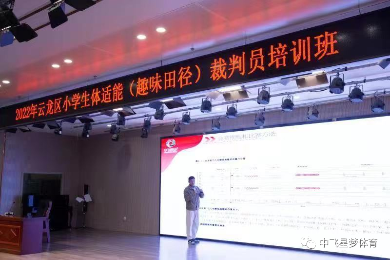 为使运动会顺利开展,11月23日上午,云龙区小学生体适能(趣味田径)裁判员培训班顺利开班。培训邀请中国田径协会E级田径教练员讲师、世界田联趣味田径指导员李雪松进行授课。来自云龙区各校的体育教师近50人参与培训。理论学习后,裁判员们亲自组装器材、布置场地,为孩子们的比赛做好一切准备工作!