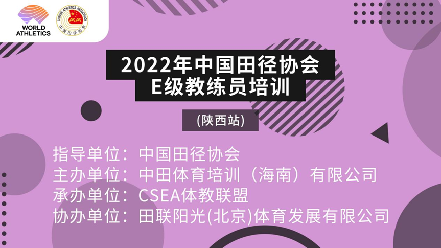 本次培训是由中国田径协会进行指导,中田体育培训(海南)有限公司主办,CSEA体教联盟承办,田联阳光(北京)体育发展有限公司协办的第126期中国田径协会E级教练员培训(陕西站)。