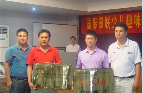 同时,还向积极开展国际田联少儿趣味田径项目和相关课题的天津市和平区中心小学,天津市河西区中心小学,天津市津南区实验小学,天津师范大学第三附属小学等四所学校颁发“国际田联少儿趣味田径实验学校”和“中国教育学会体育专业委员会“十一五”重点规划课题实验学校”铜牌。