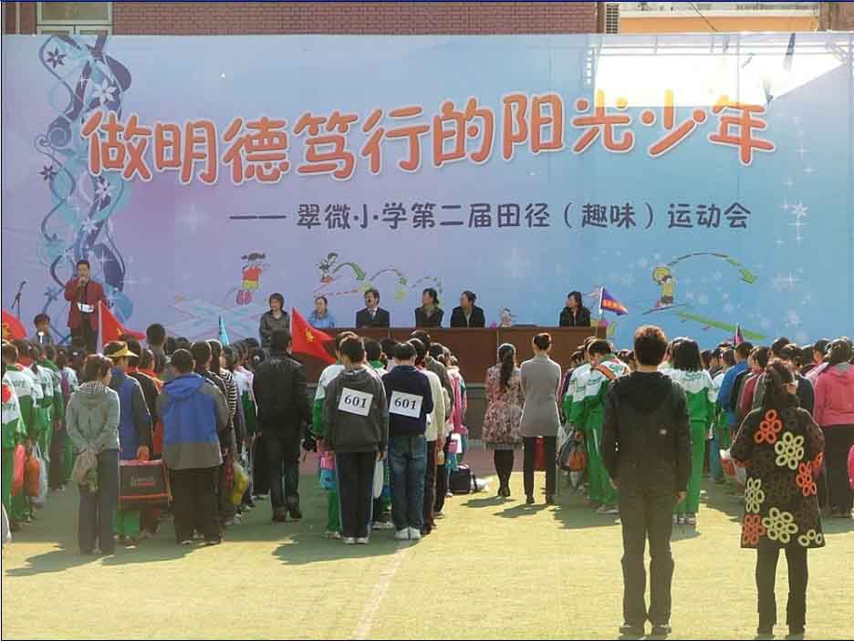 为进一步加强青少年体育锻炼意识,增强青少年体质,促进田径运动的普及与发展,4月30日,北京市海淀区翠微小学隆重的举办了第二届少儿田径(趣味)运动会,此次运动会吸引了全校30个班级,1200多人参加比赛,本次赛会选取国际田联审定的《国际田联少儿(趣味)田径》项目中最具代表性的6个少儿比赛项目:跨栏、绕杆跑、十字跳、少儿标枪、跪投实心球和撑杆跳远项目。在激烈的比赛中,同学们发扬了积极拼搏、团结合作的精神,赛出了风格,极大地丰富了同学们的课余生活。