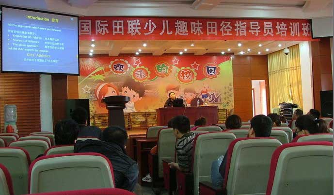 11月12日“国际田联少儿趣味田径指导员培训班”在具有八十多年历史的福州市马尾区实验小学成功举办,由来自北京体育大学章教授和田联阳光高主任主讲,马尾区的十六名体育老师和福州市各区教委体育工作者参加培训,并获得由中国教育学会体育专业委员会、中国田径协会和国际田联地区发展中心·北京联合颁发的《国际田联少儿趣味田径指导员》证书。