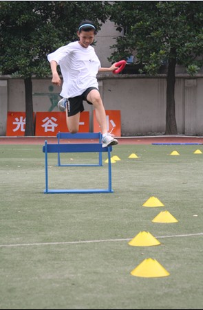 各参赛学校由12运动员(6男6女)组成参赛队,只计算团队成绩。比赛除了设立“少儿枪”“十字跳”“撑杆跳远”“跨栏接力跑”“跪投实心球”“耐力跑”这样的跳、投趣味田径项目的竞技外,还设立了能充分反应学生跑、跳、跨、以及变向能力的团体比赛项目“一级方程式”。比赛过程紧张而又激烈,精彩纷呈的竞技场面不断在操场上上演,“一级方程式”项目把整个运动会推向了高潮,场外的加油、欢呼声此起彼伏,激励着赛场上的运动员,使得运动员们的学校荣誉感顿时高涨,力争取胜、永不言败的进取心与拼搏精神,在这一刻爆发,激情四溢奋力合作着冲向终点。少儿趣味田径比赛的成功举办让学生们在紧张的学习生活之余体会了欢笑娱乐的运动,在轻松愉悦的氛围中感受到团队精神的重要性,感受到合作的趣味性,快乐的欢笑声洒满在整个绿茵场。