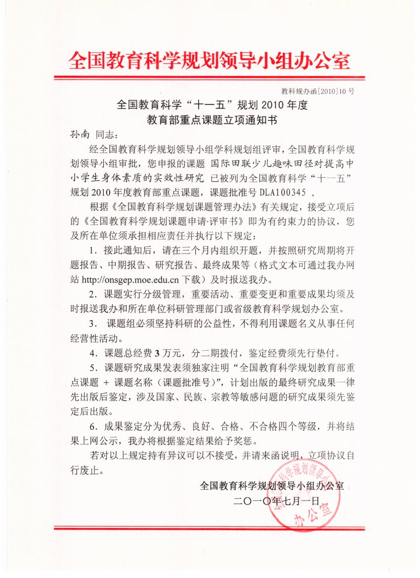 全国教育科学“十一五”规划2010年度教育部重点课题立项通知