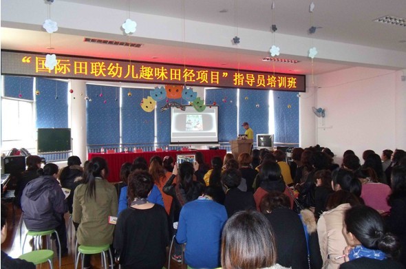 为深入贯彻落实《中共中央 国务院关于加强青少年体育增强青少年体质的意见》(中发〔2007〕7号)和《国务院办公厅转发教育部等部门关于进一步加强学校体育工作若干意见的通知》(国办发〔2012〕53号)精神,推动田径运动发展,提高少年儿童身体素质,培养少年儿童对田径运动的兴趣,日前,国际田联少儿趣味田径项目在温州龙湾区落地并于3月28日分别在瑶溪三小和区三幼举行指导员培训。全区各小学体育老师,33所幼儿园园长、保教主任共100余人参与了此次培训,培训课程由国际田联地区发展中心·北京2位专业讲师授课,经过理论和实践学习,众学员对国际田联少儿趣味田径项目加深了了解,掌握了少儿趣味田径各类器械的使用规则和活动组织的方法,并向他们颁发了“国际田联少儿趣味田径项目指导员”证书。