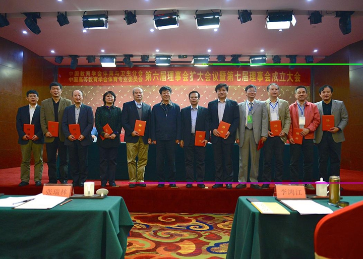 “中国教育学会体育与卫生分会、中国高等教育学会体育专业委员会第六届理事会扩大会议暨第七届理事会成立大会”于2014年10月31日在信阳师范学院召开,来自全国各地的学会理事100余人参加了换届大会。此次会议上对第六届理事会工作进行了总结,同时选举产生出新一届理事会成员。教育部副总督学杨贵仁同志当选为新一届理事会理事长。李鸿江、毛振明、耿培新、马军担任常务副理事长,马瑞升、王家红、姚家新、张瑞林、王凯珍、吴健、季浏任副理事长,耿培新担任秘书长,于振峰、王龙龙、殷恒婵、陈雁飞、白荣正、叶辉、马英华任副秘书长。