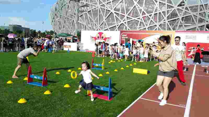 827-30日,北京世锦赛进入了最为激烈比拼的阶段,鸟巢现场氛围紧张而凝重。而在紧挨鸟巢的奥林匹克公园景观大道少儿趣味田径展示体验区则正在上演着一场别开生面的,充满快乐和阳光的孩子们的“世锦赛”。