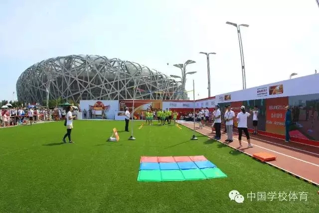 2015年北京国际田联世界锦标赛于8月22日—30日在国家体育场(鸟巢)隆重举行。鸟巢,这个承载着运动健儿梦想的福地,来自世界各地的运动员,在这里拼搏、在这里呐喊、在这里相拥庆祝,在这块福地缔造了一个又一个“神话”,在这里,中国代表队选手苏炳添以9.99秒的成绩进入了100米决赛,国人为之骄傲、为之自豪;大家还沉浸在“飞人”博尔特的速度之中……运动员的拼搏,点燃了观众的热情与激情。此时,在鸟巢旁边的绿茵场,也正在进行着一场激情不减、拼搏不减适合青少年儿童参与的“少儿田径展示比赛”活动。本届活动是由国际田联地区发展中心·北京、田联阳光(北京)体育发展有限公司主办,共有来自全国11个省22所实验学校的300余名学生参与本次活动。