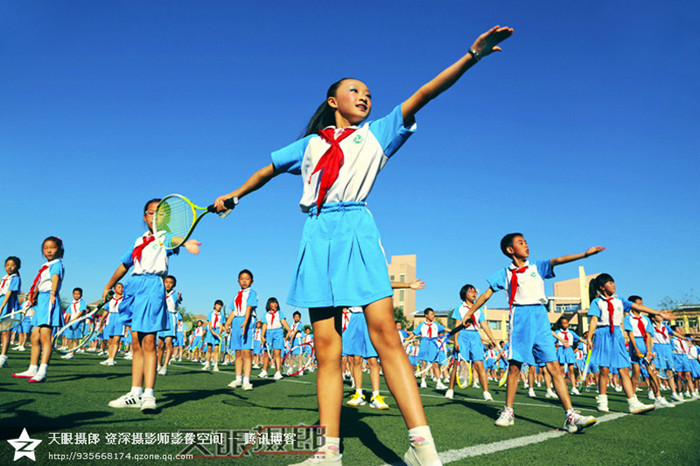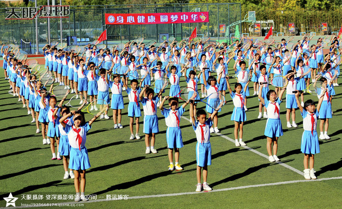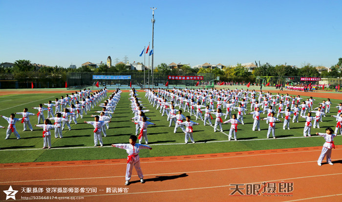 北京农学院附属小学操场上,900多名孩子快乐的表演着数百种体育课项目, 孩子们整齐划一的表演迎来现场嘉宾和观众们的阵阵掌声