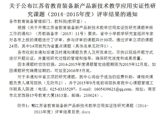 教学应用实证性研究课题(2014-2015年度)评审结果目录