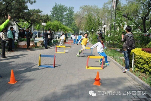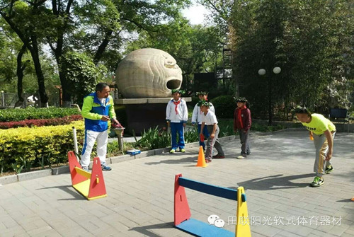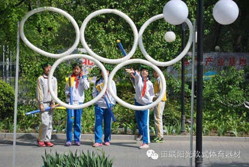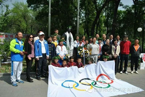 4月21日,阳光明媚,春风和煦,分别来自北京海淀区羊坊店中心小学、北京育翔小学回龙观学校、河北省沧州市新华小学、重庆市南岸区天台岗小学的18名孩子们在体育老师周晨光的带领下,来到龙潭湖体育产业园萨马兰奇铜像前,在这里摆放着软式跨栏、射击靶子、安全冰球、软式标枪、旱地滑雪、旱地雪橇等教具,同学们要在这里开一次迷你奥运会,上一堂特殊的体育课,用自己独特的方式纪念原国际奥委会终身名誉主席萨马兰奇逝世六周年。
