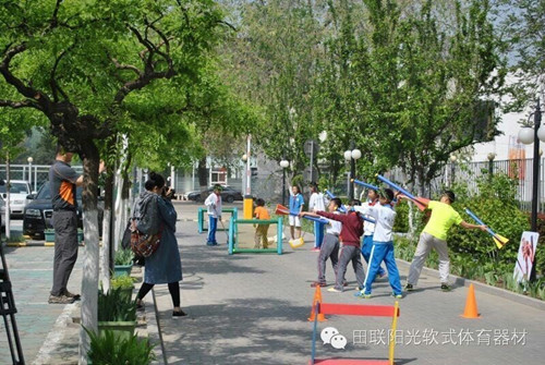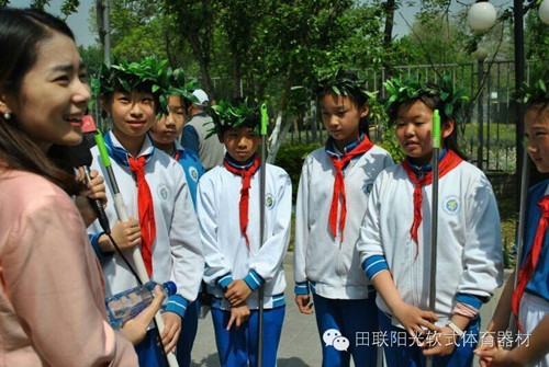 随着周老师的一声哨响体育课开始了,情绪饱满的同学们列队集合,互致问好,沿着小径布置好的器材环绕各种形式的走和慢跑热身,然后他们分别进行了迷你奥运会的软式标枪、软式跨栏、安全射箭、安全冰球等迷你奥运会体验比赛。40分钟的课程在同学们紧张欢快的节奏中很快就结束了,在奥林匹克圣歌的伴奏下,各地学生代表分别为萨马兰奇铜像敬献了哈达与花篮,从同学们张张恬静、庄严、肃穆的表情中透露出孩子心中对萨马兰奇的热爱和敬重。