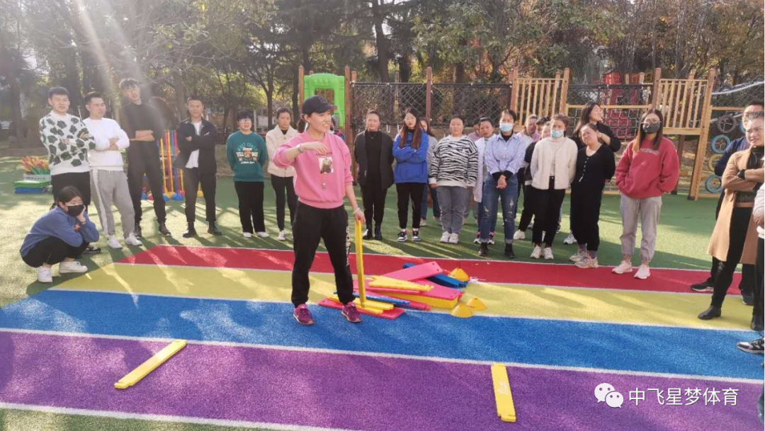 在王玮和孙晓庆两位专家老师生动有趣的讲解下,培训内容丰富而有趣,大家积极参与,充满了极大的热情。操场上欢笑阵阵,专家老师寓教于乐的授课得到了各位参训教师的一致好评。