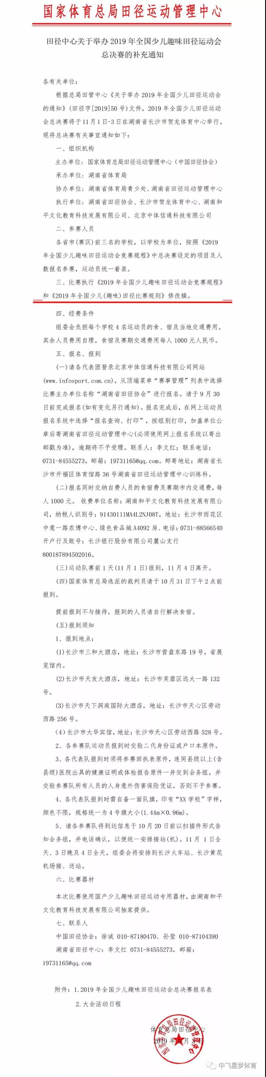 关于举办2019年全国少儿趣味田径运动会总决赛的补充通知