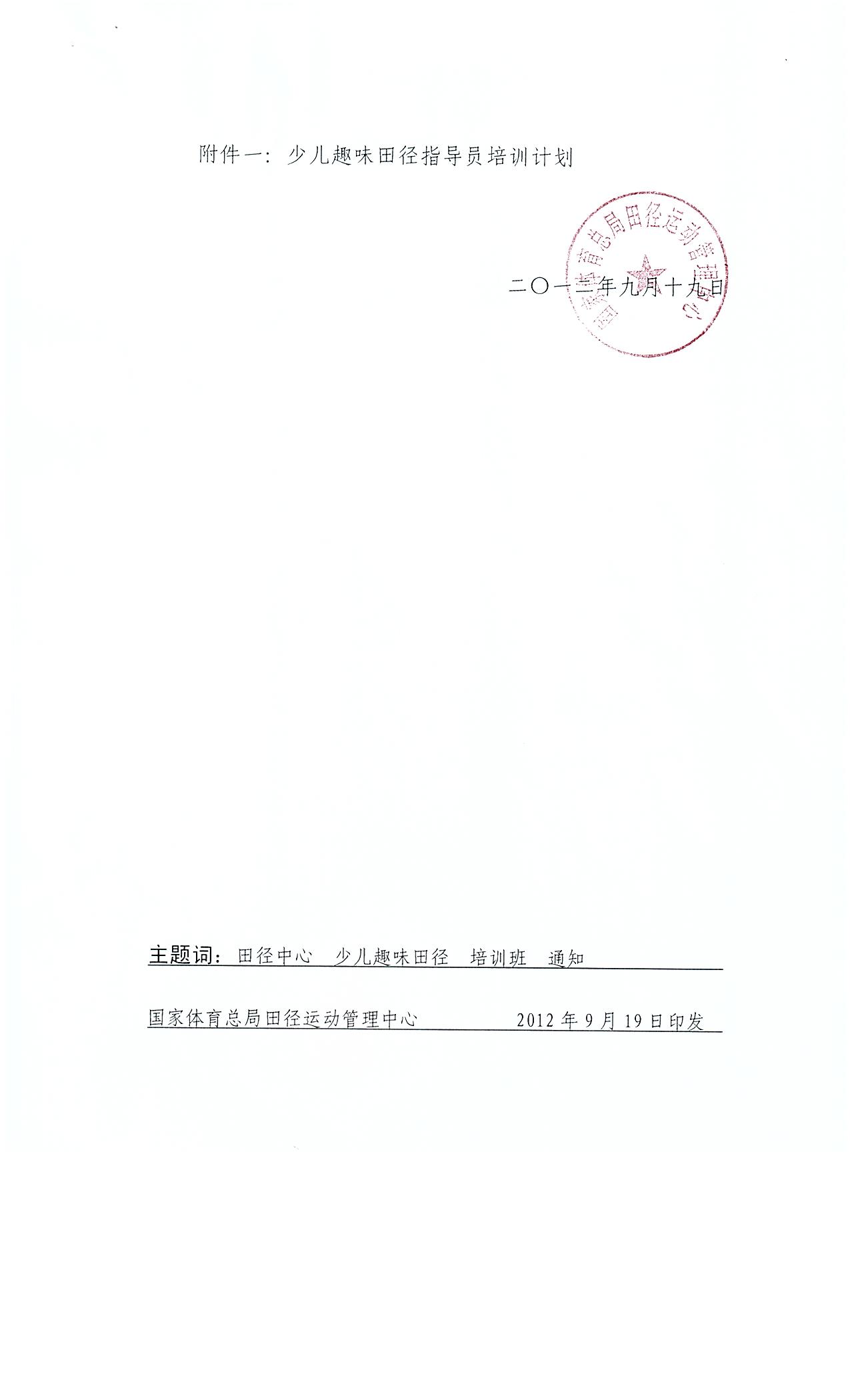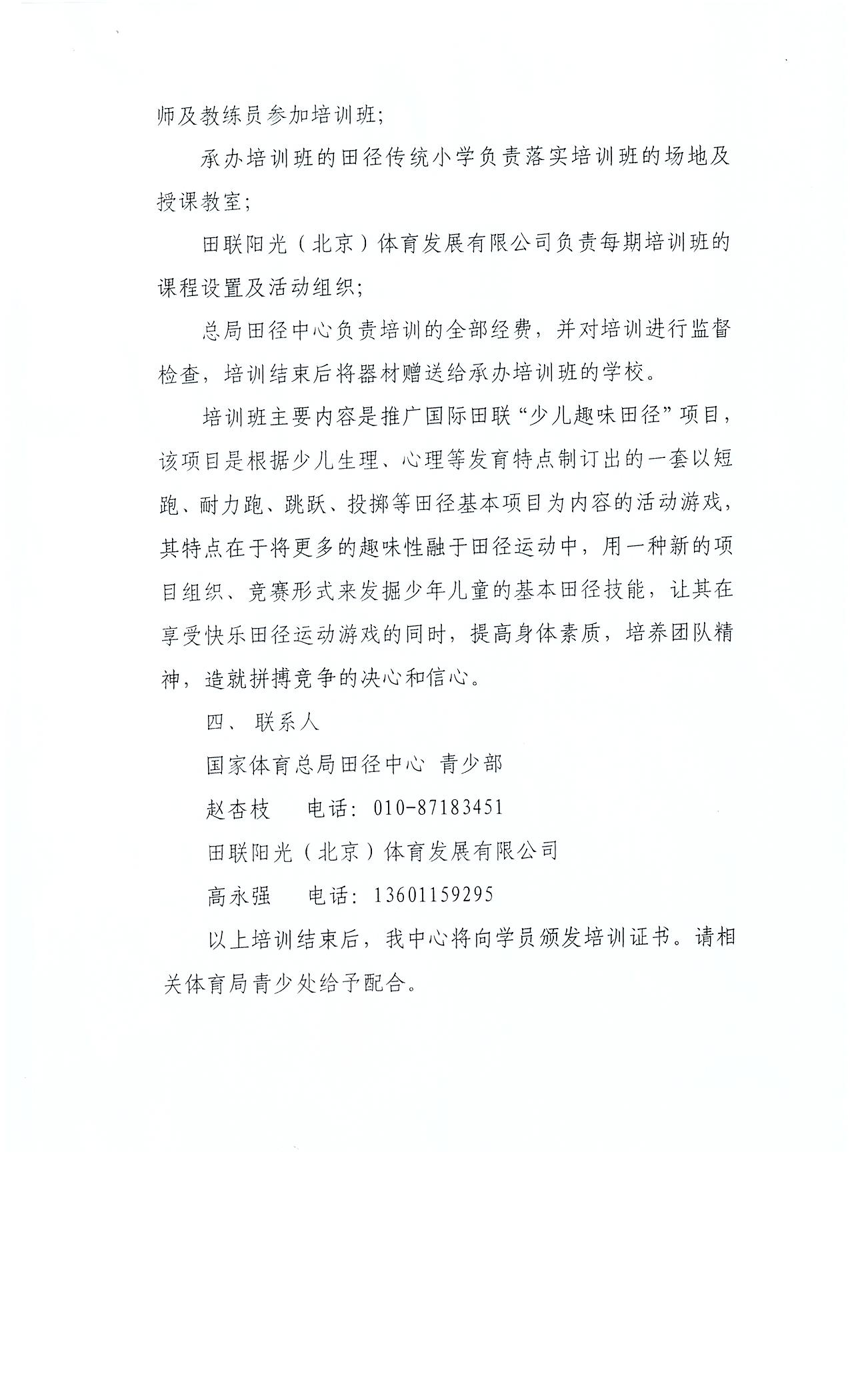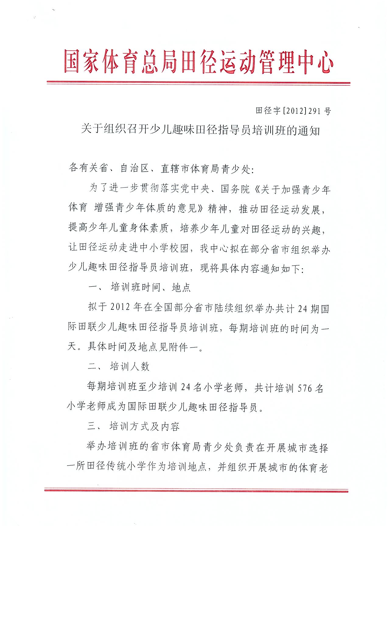 国家体育总局关于组织少儿趣味田径趣味田径培训班的通知
